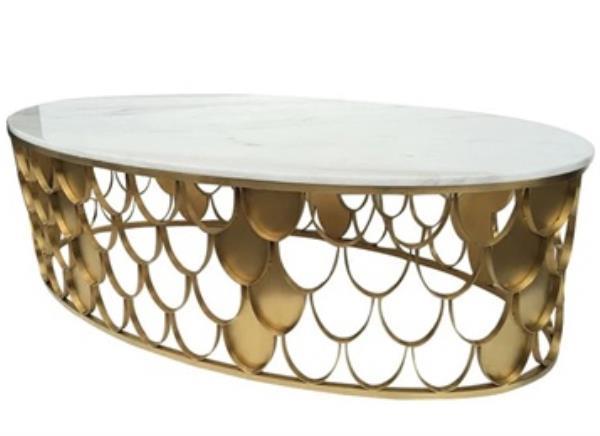 商務ktv后現代鍍金色不銹鋼橢圓魚鱗茶幾