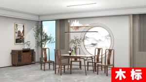 新中式新中式風(fēng)格餐廳實木餐桌椅烏金木六人位YJN51143