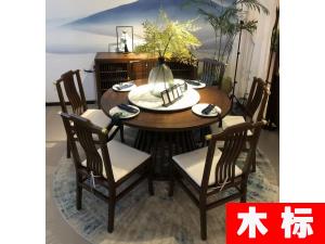 新中式餐廳實木圓形餐桌椅烏金木HLYY010